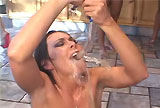 Ashley's boyfriend, Rick is a loser in every sense of the word. He has no job, he still lives with his parents and he mooches off of her, whenever possible. To give him a wakeup call Ashely and her girlfriends wanted to give him a wakeup. Much like the cliche wakeupcall of throwing a bucket of water on someone, Ashley and her friends ran with the idea and gave it a little twist. Instead of splashing water on his face, the girls decided to splash their pussy juices on him. This scene is crazy!