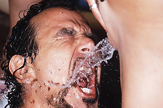 In this special installment of SquirtBukkake, we bring to you a poor soul who goes by the name of Dildo Gomez... who has to suffer the humiliation, degradation and wrath of many angry whores squirting their junk juice all over him. Does anyone know CPR? Dildo is drowning in a pool of crazy female juices.